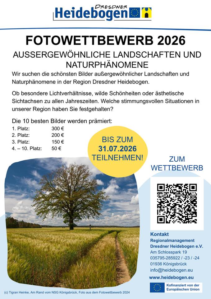Der Dresdner Heidebogen e.V. sucht die schönsten Bilder außergewöhnlicher Landschaften und Naturphänomene in der Region Dresdner Heidebogen.