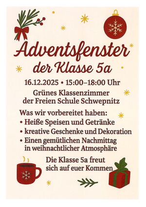 Adventsfenster der Klasse 5 a der Freien Schule Schwepnitz am 16.12.2025